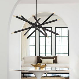 Contemporary cool: Sleek metal rods seemingly balance in the air. Clean lines and subtle design details come together making this chandelier not only handsome but versatile. The Viper's design ingenuity is showcased in the arms which can be positioned vertically, horizontally, or configured into a random pattern. Customize your design style even further with decorative light bulbs. Consider white frosted globe bulbs for a Mid Century vibe or go dark and moody with vintage T bulbs.