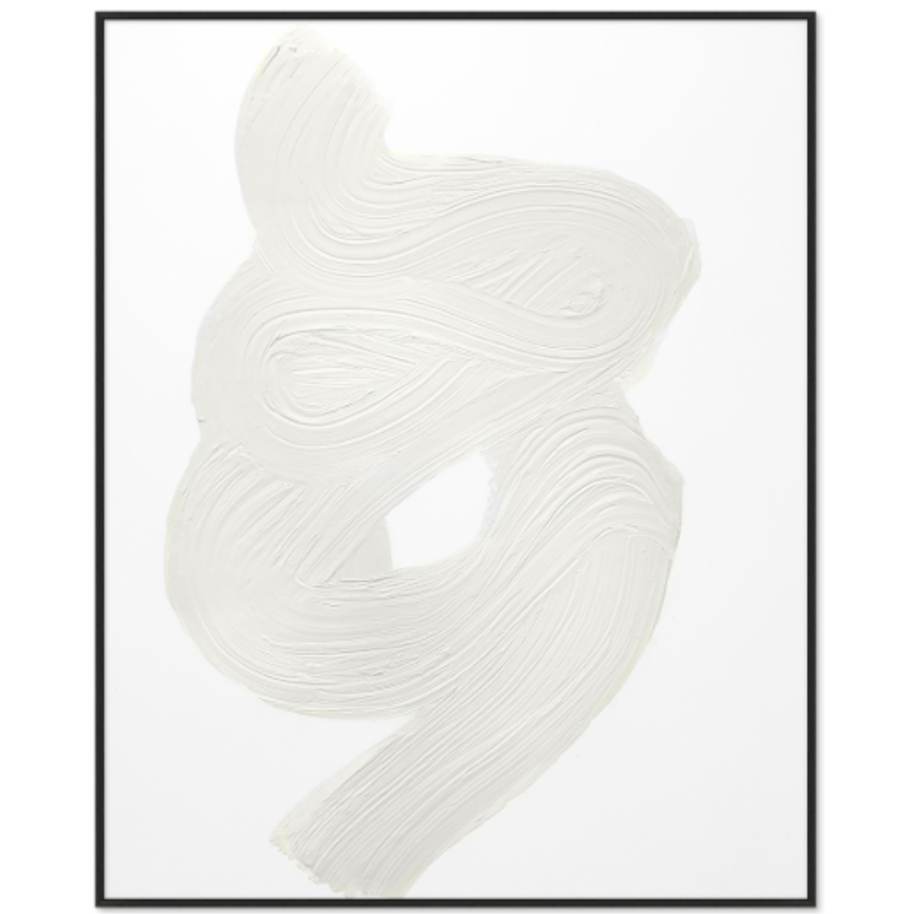 Presented in a serene white-on-white palette, this gestural piece exude modern sophistication. Hand-painted with lush texture reminiscent of the original, each reproduction brings subtle motion and refined interest to your space.