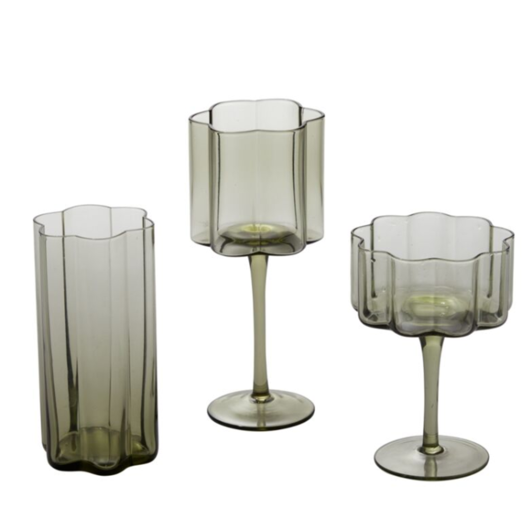 As striking as it is practical, the Floret Highball Glass makes a statement whether displayed on a bar cart or open kitchen shelving. Handcrafted from solid glass, its smoky green hue, scalloped rim, and vertical ridges add a touch of sophistication to any cocktail party, event, or home bar. Dishwasher safe, this elegant glass is even more captivating when paired with the full Floret glassware collection.