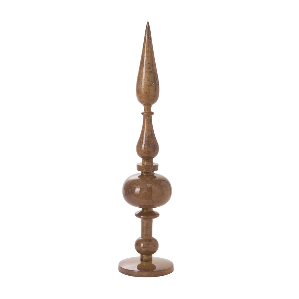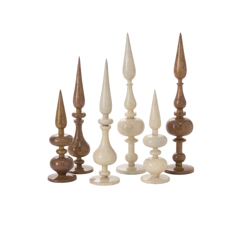 Copper toned finials with weighted bases to keep them sturdy and in place.