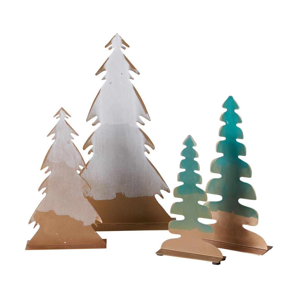 Crafted from gold-toned sheet metal and hand-painted with delicate washes of white and green patina, this piece exudes artisanal charm and subtle sophistication. The layered finish gives it depth and character, making it a striking decorative accent that brings elegance and a touch of artistry to any space.