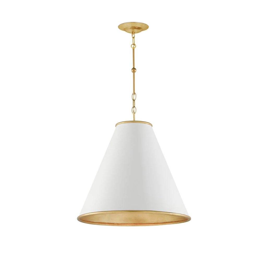 A statement in contrast and texture, the Pierrepont Large Pendant pairs a gesso painted exterior with a luminous gold leaf interior. Its painted gold accents complete the look. Explore the full Pierrepont collection for additional sizes and finishes.