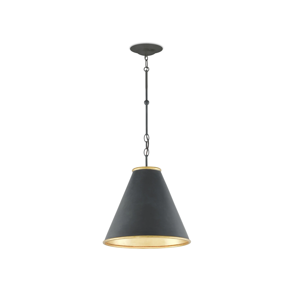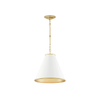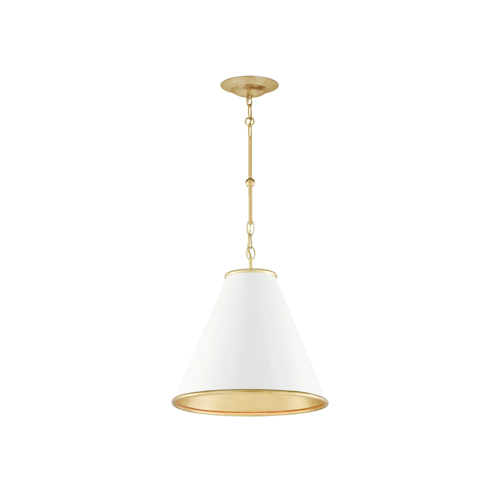 A statement in contrast and texture, the Pierrepont Small Pendant pairs a gesso painted exterior with a luminous gold leaf interior. Its painted gold accents complete the look. Explore the full Pierrepont collection for additional sizes and finishes.