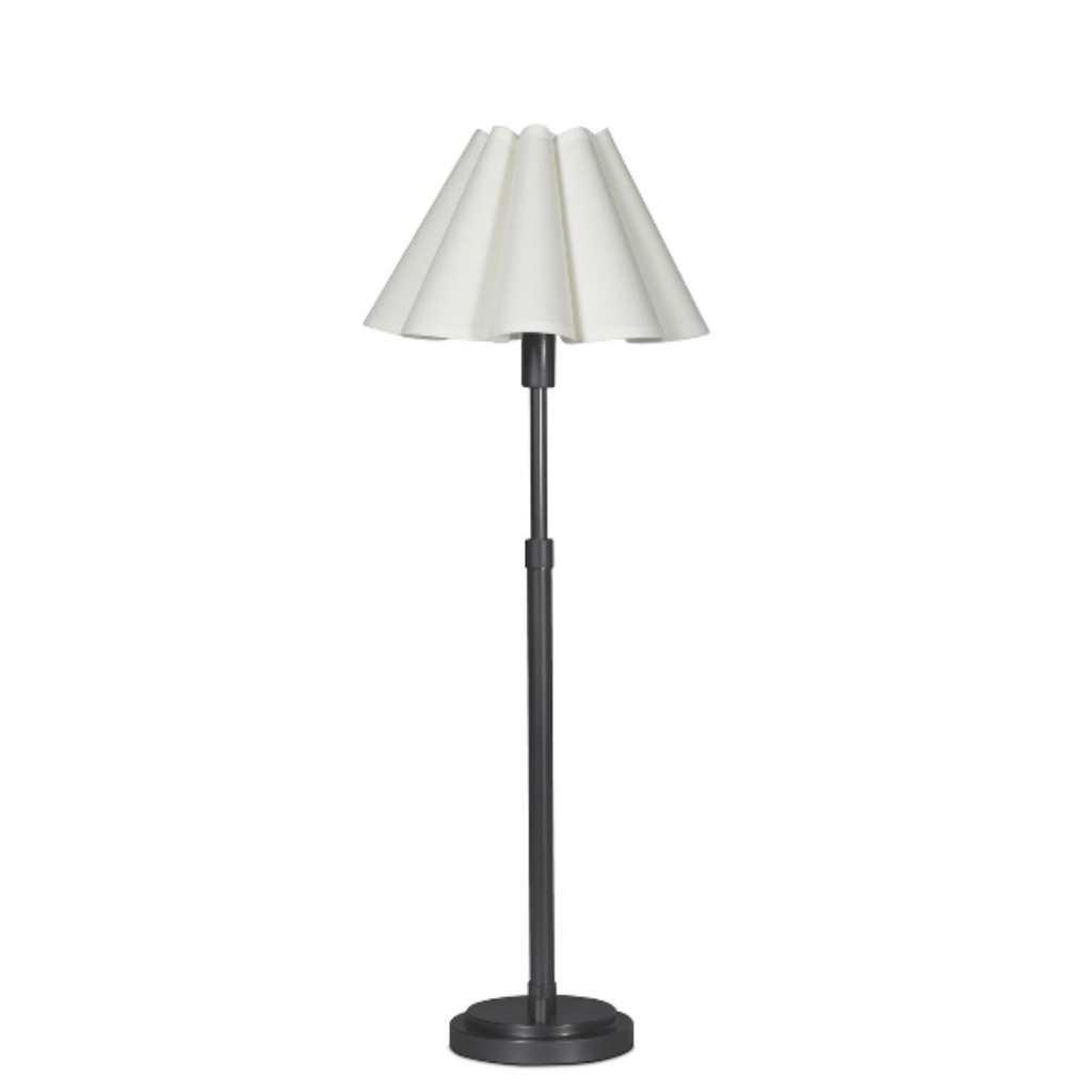 The Polly Table Lamp exudes understated elegance with its white scalloped shade, casting a warm, welcoming glow that brightens dining or side tables with ease. Its sculpted base blends timeless charm with a modern edge, making it a versatile and refined addition to any room.
