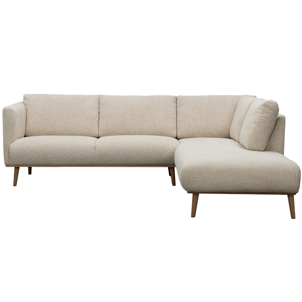 The Emily 2-Piece Sectional offers a clean, contemporary look with Scandinavian charm. Designed with an open-end chaise and tall tapered legs in natural wood, it brings an airy, elevated feel to your space. Upholstered in soft Ecru fabric, this Danish-made piece balances comfort and style with effortless ease.