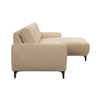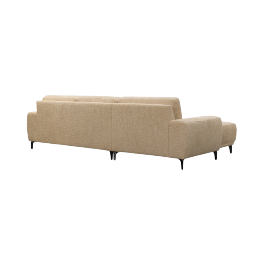Expertly crafted with solid wood frames and reinforced hardwood laminates, the Isabella Sectional is built for enduring elegance. Fully padded with fibreboard-reinforced arms and backs maintain a flawless silhouette, preventing sagging and preserving its tailored appearance over time. The loose back cushion, filled with a premium blend of foam flakes and siliconized fibers, delivers a luxuriously soft yet supportive feel designed to retain its shape for years to come. Legs are available in black or gold metal.