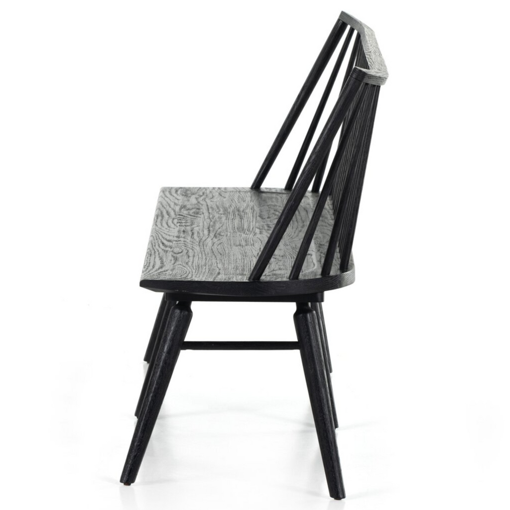 For a clean, modern take on the traditional Windsor, this tall beauty is wire-brushed to play up natural cathedral graining, then finished in a deep, classic black.